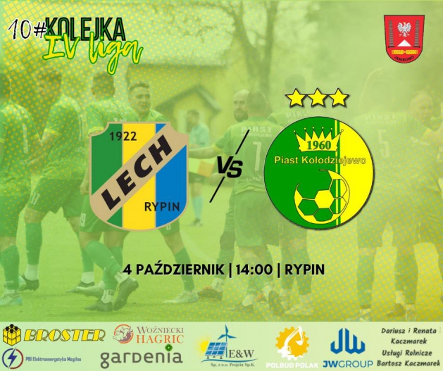 W sobotę o godzinie 14:00 na rypińskim stadionie mecz IV ligi kujawsko-pomorskiej, zagra RKS Lech Rypin & KS Piast Kołodziejkowo.
