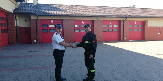 Z tej okazji w dniu 24 czerwca podczas zmiany służbowej Komendant Powiatowy PSP st. bryg.Grzegorz Łydkowski wraz z pracownikami Komendy podziękował za dotychczasową pracę i służbę, wręczył list gratulacyjny st. asp. Januszowi Okraszewskiemu.